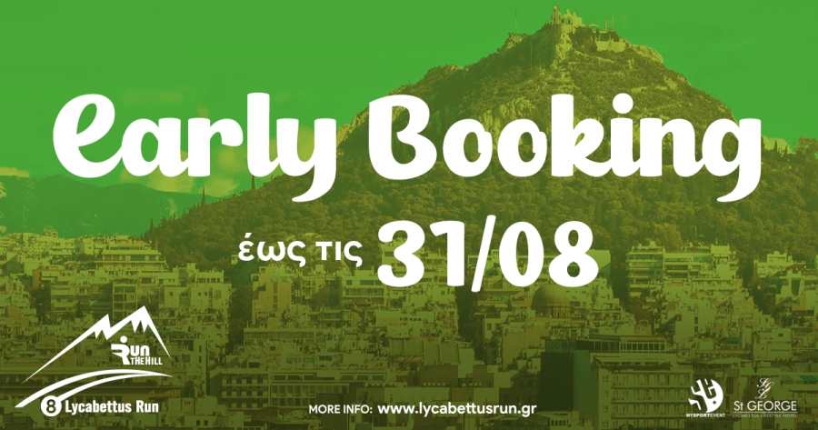Η Οργανωτική Επιτροπή του 8ο Lycabettus Run, όπως είχε ανακοινωθεί από την έναρξη των εγγραφών, υπενθυμίζει στους ενδιαφερόμενους δρομείς που θέλουν να συμμετέχουν στην διοργάνωση, ότι η περίοδος Early Booking, για προνομιακή τιμή εγγραφής λήγει το βράδυ της 31ης Αυγούστου.